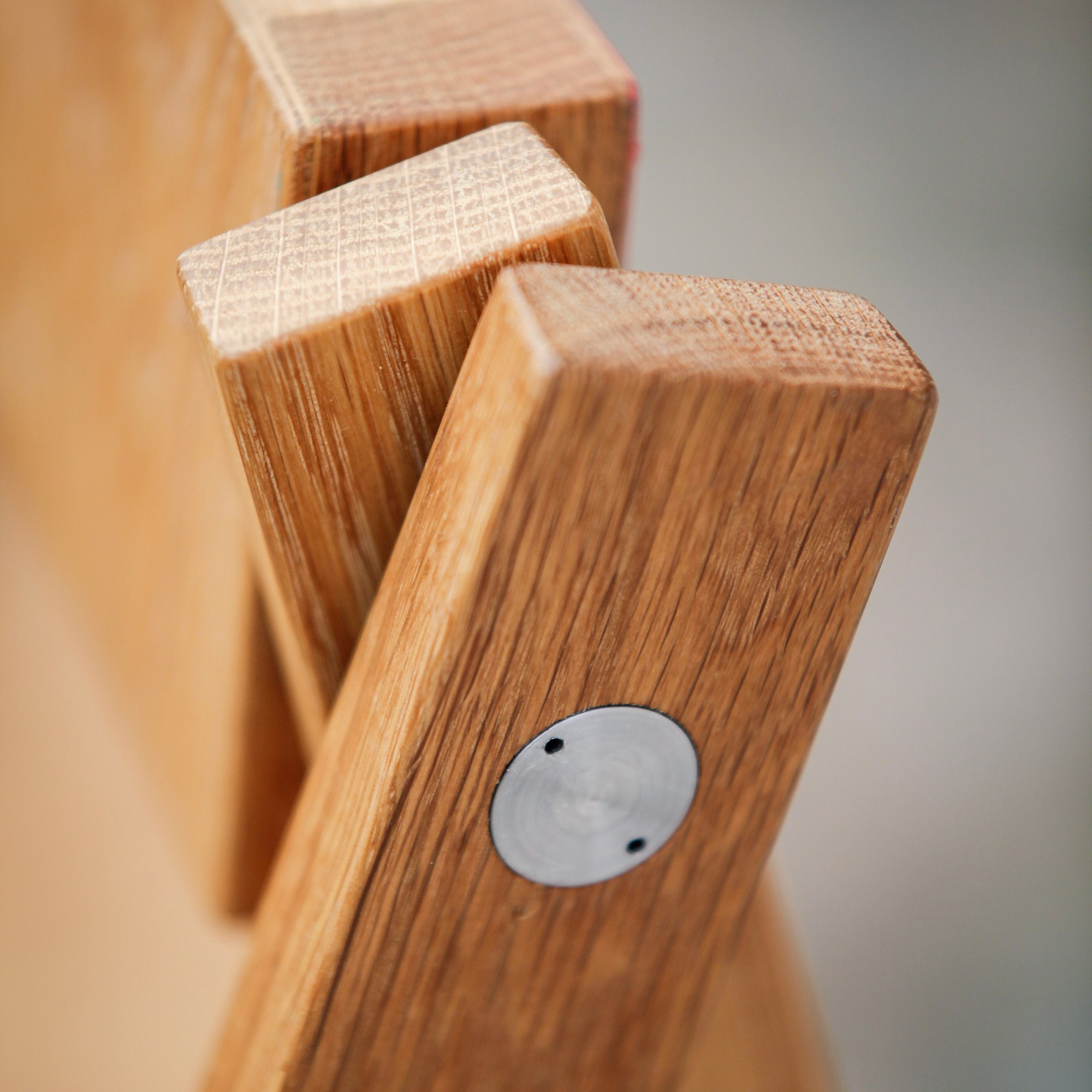Lively colors, straight lines and curves, ornamental hanging on the wall side by side.